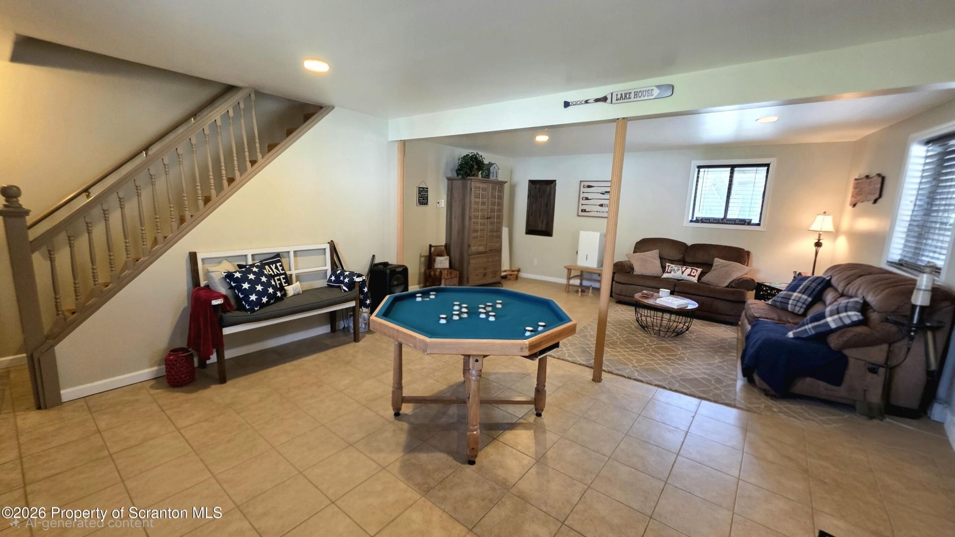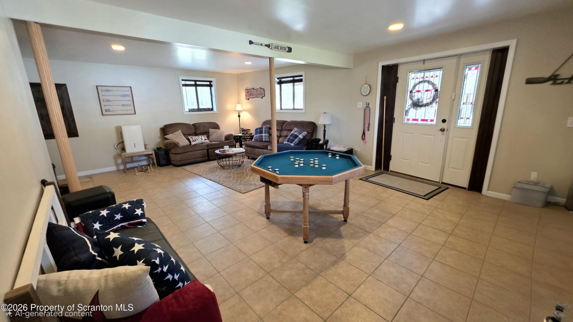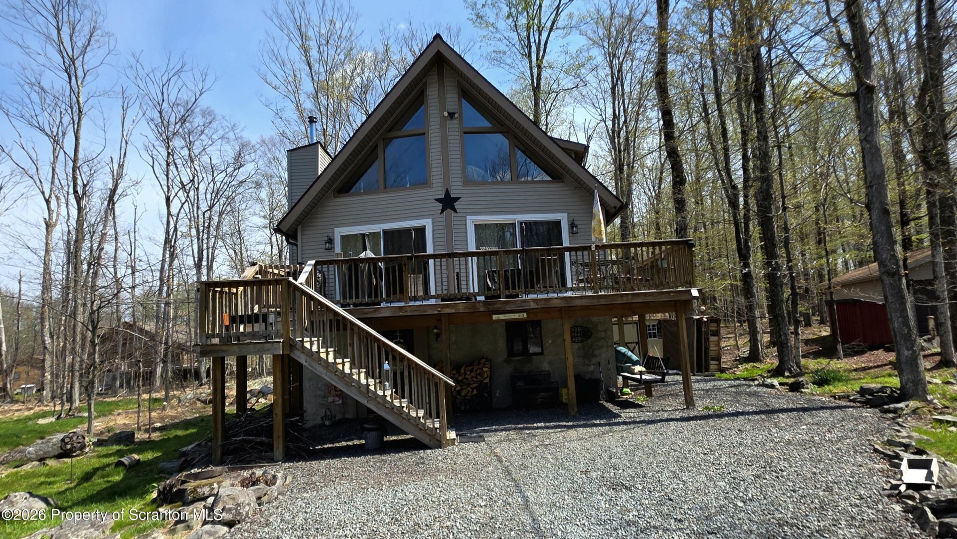 Nestled in the amenity-filled community of The Hideout, this meticulously maintained chalet offers the perfect blend of rustic charm and modern comfort with a true country cabin-on-the-lake feel. Step inside to an expansive great room that immediately sets the tone, creating a warm and inviting space for gathering.The main living area showcases classic chalet architecture with exposed wood beams,